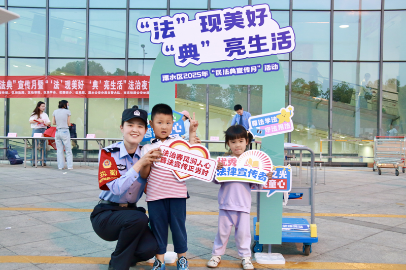 三是法治拍照打卡:定格美好生活法治瞬间。活动特别设“‘法’现美好‘典’亮生活”主题打卡墙,以标语形式展示未成年人保护法、民法典等法律常识,吸引众多小朋友驻足合影。现场工作人员引导群众扫描二维码,关注“溧水政法”“溧水普法”微信公众号参与线上知识竞答,分享至朋友圈即可领取法治小礼品。拍照打卡既能留下美好回忆,又能通过朋友圈传播法律知识,这个创意得到群众一致认可。