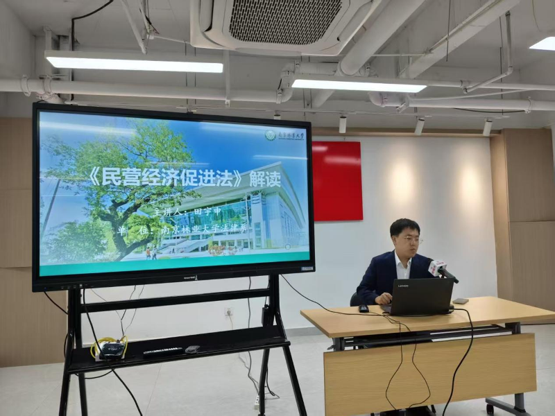 活动中邀请南京林业大学法律系讲师、民商法博士田宇申围绕《民营经济促进法》的立法背景、立法理念、制度衔接、实践指引四个部分进行了系统讲解,帮助企业家把握政策红利,增强法律风险防范能力。