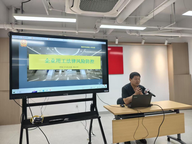 邀请玄武区法院孝陵卫人民法庭庭长陈文军结合劳动争议典型案例,剖析企业从员工入职管理到职中管理,再到离职管理全链条的用工常见法律风险,提出纠纷化解实务建议,为企业规范人力资源管理提供参考。在交流环节,企业家代表就经营中的法律困惑踊跃提问,专家现场解答,气氛热烈。