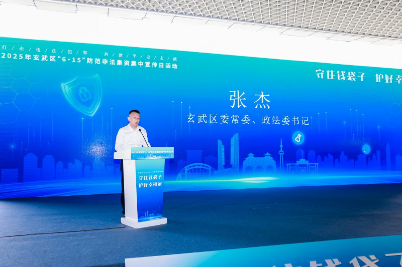 活动伊始,玄武区委常委、政法委书记张杰发表致辞,从法治保障社会稳定的高度,深刻阐述防范非法集资对于维护群众财产权益的重要意义,号召全区群众主动参与防范行动,共同织密金融安全防护网。