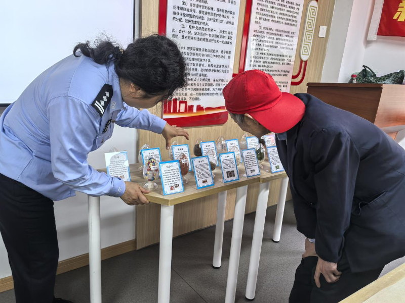 授课邀请了南京市公安局玄武分局禁毒大队一级警长严明慧警官,严警官通过毒品模型展示,展板详情介绍,让居民们细致了解何为毒品、毒品的发展过程以及毒品种类的划分等等,重点告诉大家如何识别毒品。同时,深入浅出地剖析了毒品对个人、家庭及社会的危害,通过身边人,身边事,让居民认识到禁毒工作重在预防。同时就目前流行的新型毒品和毒品替代物结合图片案例进行了详细介绍,教会群众识别和防范。现场还播放了国家禁毒委制作的禁毒公益宣传片,直观的画面和真实的故事,给居民们带来了强烈的视觉冲击和心灵触动。