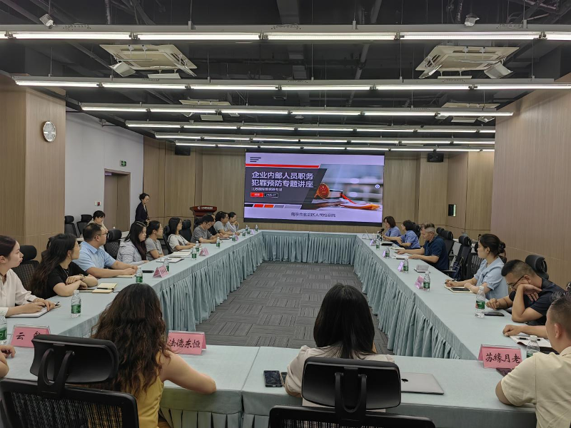 企业是社会经济发展的细胞,提高企业员工法律意识,不仅是维护企业自身利益的需要,更是维护市场经济秩序、促进社会公平正义的必然要求。2025年7月25日,玄武区委政法委、玄武区法学会和玄武区人民检察院等单位携手走进江苏国际数据港,为园区企业量身打造了“企业内部人员职务犯罪预防”专题讲座,以优质司法服务护航企业健康发展,推动企业廉洁守法再上新台阶。