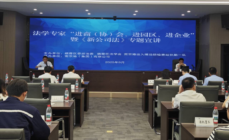 为切实发挥法学研究服务经济社会发展的职能,帮助商(协)会、园区及企业精准把握《新公司法》要点,有效化解经营中的法律难题,9月25日下午,栖霞区法学会联合南京港出入境边检站执勤一队在南京港新生圩分公司开展“进商(协)会、进园区、进企业”专项活动,南京港(集团)有限公司30余名代表参加活动。