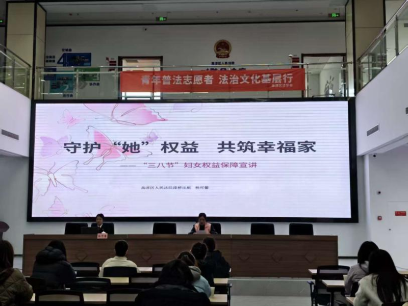 3月6日,高淳区法学会联合区人民法院漆桥法庭走进古柏街道联合村“e+融合法庭”,开展了一场以“守护‘她’权益 共筑幸福家”为主题的普法宣传活动,将法律知识与节日关怀送到妇女群众身边。