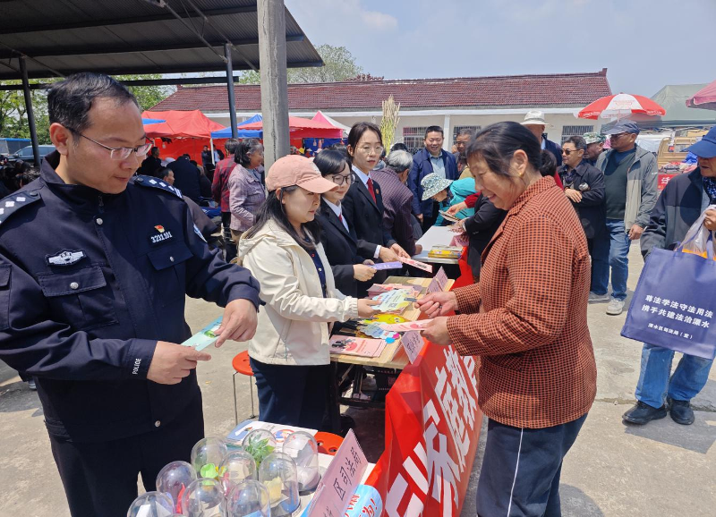 为深入推进法治溧水建设,将法律知识送到群众身边,切实提升基层群众法治意识和自我保护能力,4月30日中午,溧水区法学会联合区法院、区检察院、永阳司法所、大连山戒毒所,依托荆塘山传统庙会平台,在戴家社区开展“青春普法护民生 传扬民俗守法治”主题普法宣传活动,将法治宣传与民俗文化深度融合,让法治理念伴着民俗烟火气走进群众、融入生活,吸引现场群众一千余人参与,让法治春风浸润基层一线。