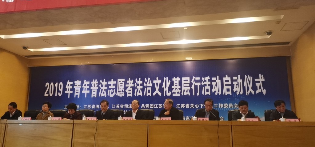 启动仪式上,省关工委常务副主任李明朝向青年普法志愿者代表授旗,朱华仁主持启动仪式,刘旺洪、蔡新良分别致辞,南京审计大学志愿者代表作了表态发言。