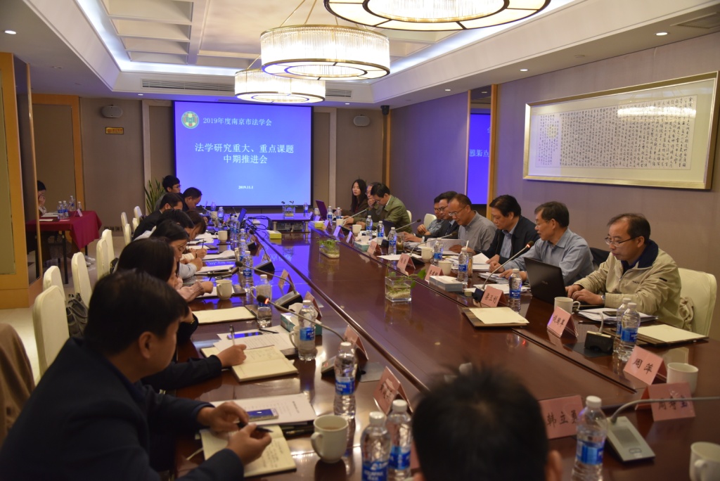 11月1日,市法学会召开2019年度法学研究重大、重点课题中期推进会。市委政法委副书记、市法学会副会长鲍陈到会并讲话。南京工业大学法学院教授、市法学会学术委员会委员刘小冰,南京师范大学法学院教授、博导、市法学会学术委员会委员李建明,中共江苏省委党校法政部副主任、教授梁三利等评委及各课题组成员共31人参加会议。市法学会专职副会长丰友芳主持会议。
