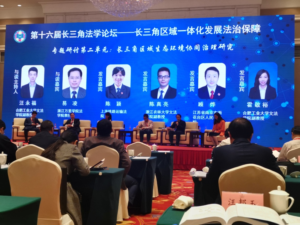 11月12日,以“长三角区域一体化发展法治保障”为主题的第十六届长三角法学论坛在义乌举行。浙江省委常委、政法委书记、省法学会会长王昌荣,中国法学会一级巡视员诸葛平平出席开幕式并讲话。浙江省委政法委常务副书记、省法学会党组书记、常务副会长朱晨主持开幕式。金华市委书记陈龙致辞。本次论坛为期一天,设置了主旨报告、专题研讨、大会交流等环节,来自上海、江苏、浙江、安徽三省一市的法学法律专家学者和党委政法委、法学会相关领导共计230余人参加。黑龙江、辽宁、吉林、河南、甘肃的法学会领导应邀出席。开幕式上还对论坛获奖论文进行了表彰,我市雨花台区检察院顾烨的论文《长三角区域江河湖海水环境协同治理研究》获二等奖并参加大会交流发言。
