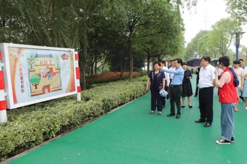 省、市法学会一行首先参观六合区法学会实践基地户外法治文化阵地(法学驿站)、法治文化公园、民法典题材农民画宣传栏、法学会陈列室等实景。